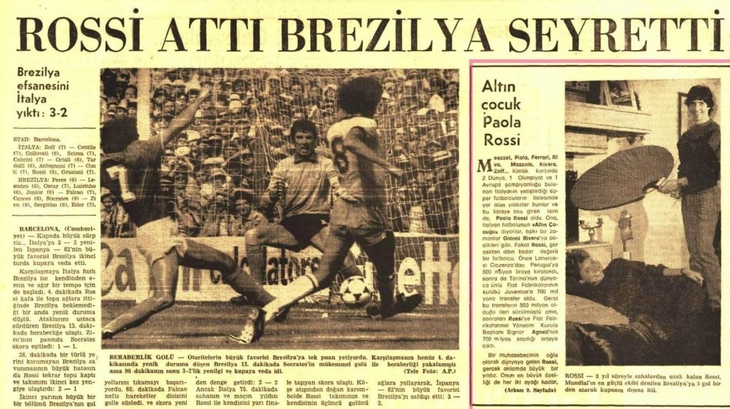 O gün Rossi’ye düşman olmuştum. Çünkü geçmişinde şike yaptığı için 3 yıl men cezası almış sabıkalı bir oyuncunun, benim hayranlık duyduğum Brezilya takımının yolunu kesmesi bana göre büyük haksızlık olmuştu.