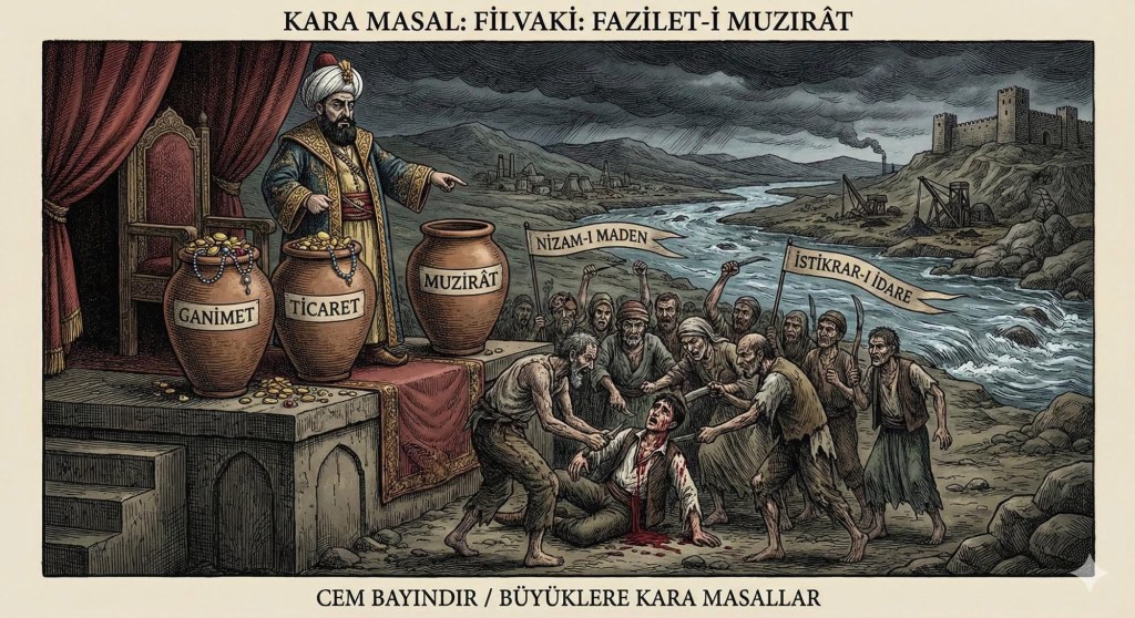 Seneler Fırat gibi, madenden çıkan cevherlerin nukūduysa sel gibi akmış. Hüsrev Efendi’nin odasında üç devasa küp peyda olmuş. Bu küpler, kasabalının teri, eytamın gözyaşı ve madenci esnafının siftahıyla dolup taşıyormuş. İlk iki küp ağzına kadar “hamdolsun” ile dolmuş. Lakin o meşum üçüncü küp… O küp, sanki dipsiz bir kuyu, doymak bilmez bir nefismiş.